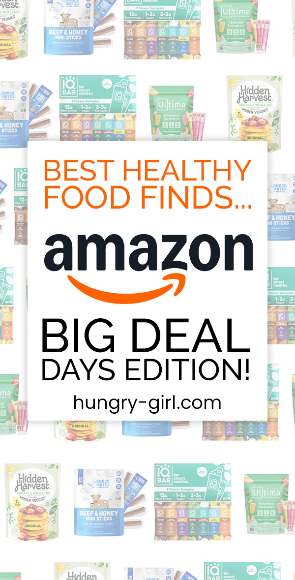 In addition to our featured deals above, we also have a carefully curated list of Amazon Big Deal Days sale finds hand selected with YOU, the Hungry Girl audience, in mind. (At this point, we have a pretty good idea what you’re into.) Our whole list is 20–80% off! From everyday essentials like dishwasher detergent pods (30% off) and women’s razors (56% off) to now’s-the-time investments, like getting 35% off a real Nespresso machine. We’re like your personal shoppers here, so check out what we pulled for you!Chew on this: