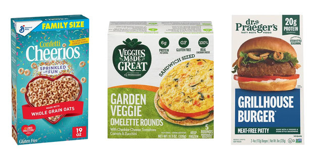 Frozen Omelette Patties, Cheerios with Sprinkles, Plant-Protein Burgers & More
