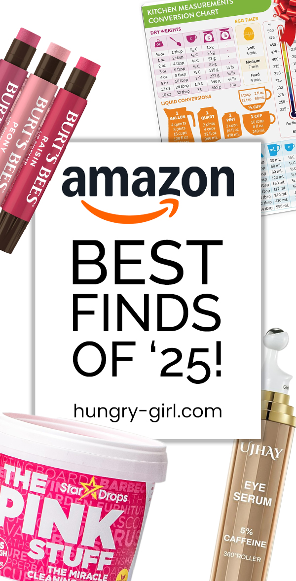 Sign up for our twice-weekly 1-Click Picks newsletter (featuring products hand-picked by Lisa herself), and explore all of the Hungry Girl Idea Lists on Amazon!Chew on this: