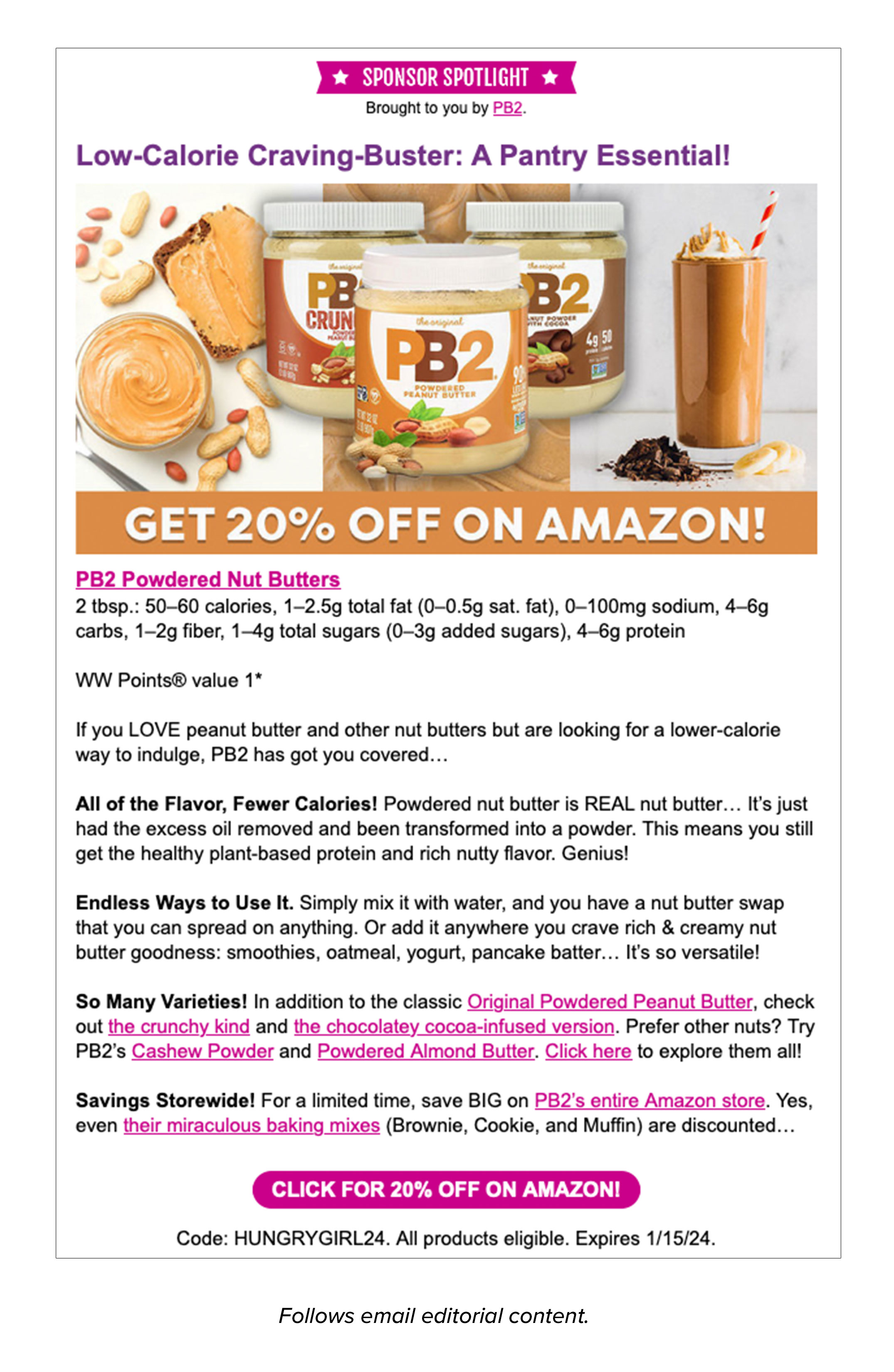 Our most impactful offering. A fully branded email featuring native sponsored content, multiple large custom images, and expansive real estate for storytelling, usage ideas, and brand discovery. Multiple calls to action drive sales via retail, DTC, and/or Amazon. 100% share of voice.Amazon Live Package